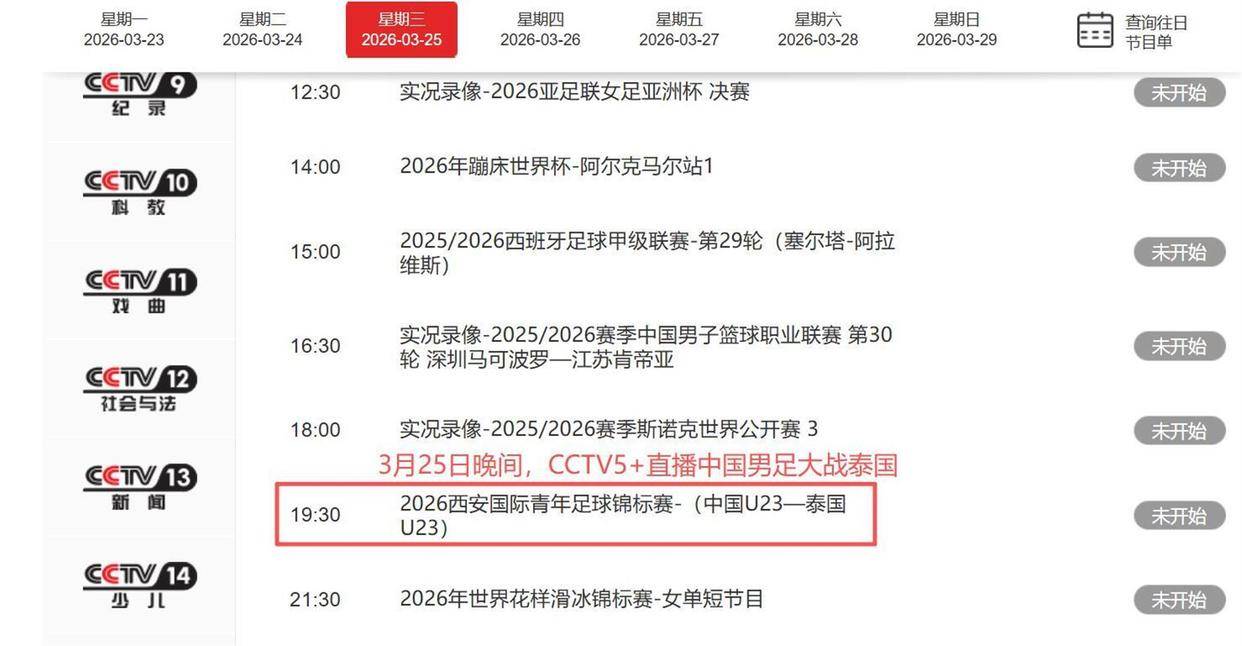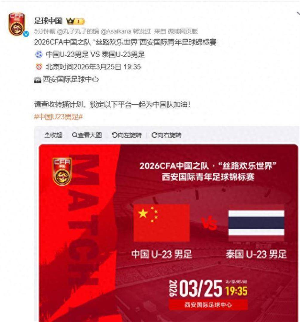 2026-03-27雨燕直播,NBA直播,世界杯直播,足球直播,台球直播,体育直播,世界杯,欧洲杯,苏超直播,村BA直播,苏超联赛,村超,村超直播2026年3月25日晚上7点35分,央视体育赛事频道CCTV5 将准时直播一场焦点战。 中国U23男足坐镇西安国际足球中心,迎战老对手泰国U23。 这是年初那支历史性夺得U23亚洲杯亚军的青年军,在捧起银牌后的首次公开亮相。 然而,当你打开电视时,可能会感到一丝陌生——场上那支身披红色战袍的队伍,和两个月前在沙特创造奇迹的球队,几乎已经“面目全非”。 与此同时,这场名为“西安国际青年足球锦标赛”的四国赛,本身也经历了一场意外的变故:原定的参赛者伊朗U23队因故退赛,由越南U23队紧急递补。 而“伊朗退赛”这四个字,在2026年的世界足坛,正酝酿着一场更大的风暴。